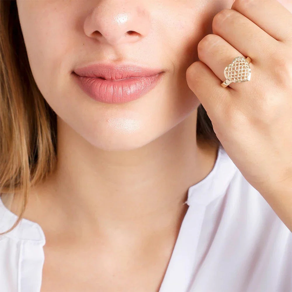 Adicione um toque de charme ao seu dia com o Anel de Coração Banhado a Ouro 18k. Adquira agora e apaixone-se por sua beleza!